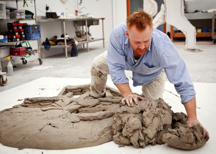 Houseago explained to Design & Art Magazine that the Rome sculptures grew out of a difficult time in his life. He certainly had a very challenging start as a young boy and student in Yorkshire but has had an extraordinarily fast-track career to success in the last ten years. Brought up in a working-class family in Leeds, Houseago left for London at 19 years old to attend Central Saint Martins College of Art & Design. Later he studied at De Ateliers in Amsterdam where he met artist Matthew Monahan and his future wife, painter Amy Bessone.