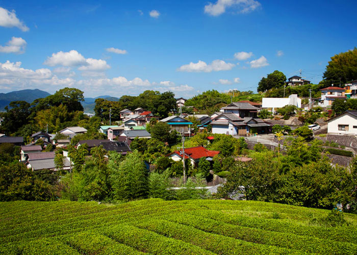 The brilliant green tea bushes covering the Makinohara Plateau in the Shizuoka Prefecture in Japan.