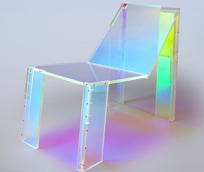 | Dichroic film on acrylic give the chair its rainbow hues |