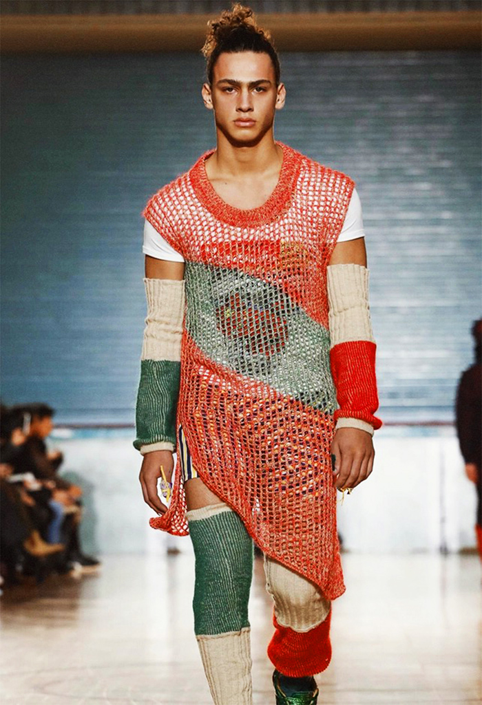 | Rising model Barak Shamir in crochet at Vivienne Woodwood. Photo: Filipe Phitzgerald |