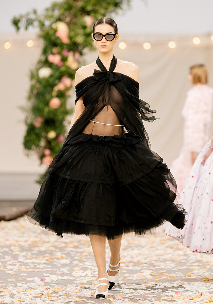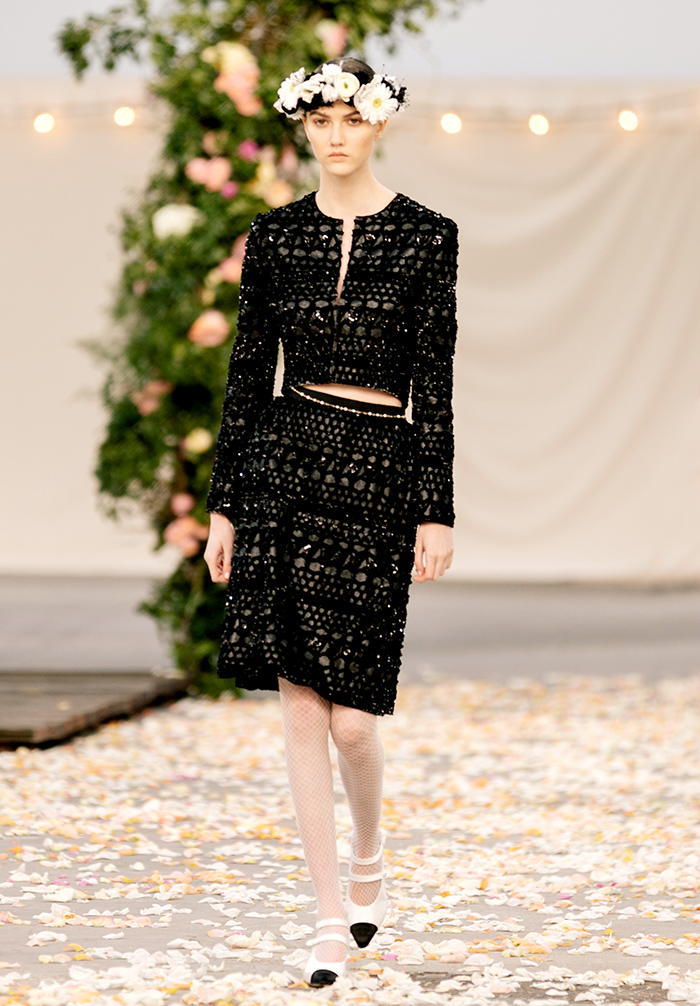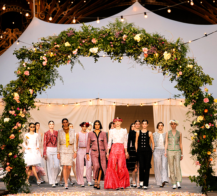 "I knew we couldn't organise a big show, that we would have to invent something else, so I came up with the idea of a small cortege that would come down the stairs of the Grand Palais and pass beneath arches of flowers," says Virginie Viard. "Like a family celebration, a wedding. I love big family reunions, when the generations all come together. It's so warm. This is the spirit at Chanel today, because we are also like a family."