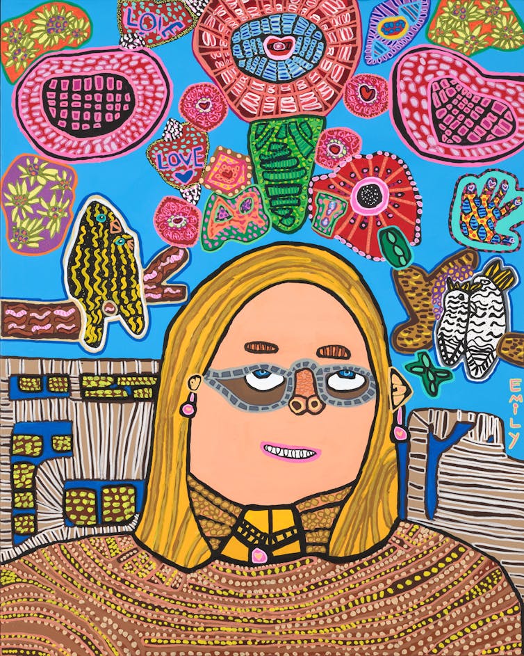 He has awarded the prize to Naomi Kantjuriny for her painting Minyma mamu tjuta, from the Tjala Arts Centre. She has described her painting as being about the stories told and her culture.